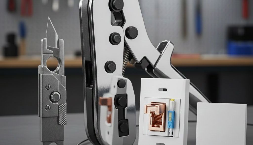 Los detalles que marcan la diferencia en tu instalación. Aquí encontrarás Herramientas profesionales para el trabajo con cobre y fibra, así como una gama de Accesorios esenciales como Faceplates (placas frontales) horizontales y verticales, y Tapas Ciegas para una estética limpia y organizada en tus puntos de red. Todo lo necesario para una instalación completa y prolija.