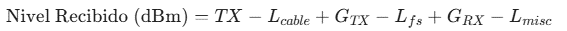Donde D es la distancia total del enlace en kilómetros y f es la frecuencia de operación en GHz.