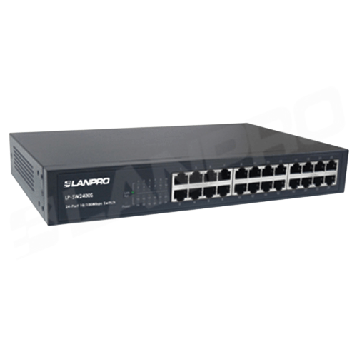 • Detalles Técnicos: VEINTICUATRO puertos RJ45. Velocidad Fast Ethernet (DIEZ O CIEN MEGAS POR SEGUNDO). Factor de forma 1U, Montable en Rack.