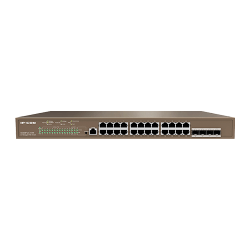 Este Switch PoE opera a Capa 3 (L3), proporcionando capacidades avanzadas de enrutamiento y gestión para la red troncal o el núcleo del sistema. Está diseñado para un rendimiento de alta capacidad, contando con VEINTICUATRO Puertos GIGABIT (velocidad de MIL MEGAS POR SEGUNDO), todos compatibles con PoE bajo los estándares IEEE 802.3 AF/AT. Dispone de CUATRO Puertos SFP GIGABIT dedicados para enlaces de fibra óptica de alta velocidad (Uplink). La característica principal es su robusta capacidad de alimentación, con una salida total máxima de TRESCIENTOS SETENTA VATIOS, ideal para grandes despliegues de cámaras IP y Puntos de Acceso Wi-Fi de alto consumo.