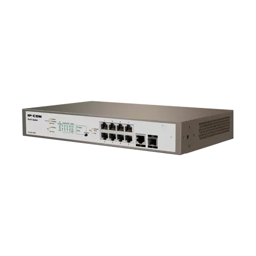 Detalles Técnicos: OCHO puertos GIGABIT con PoE. UN puerto SFP GIGABIT. Funcionalidad Capa 3 (Enrutamiento estático). Soporte para Software IP-COM PROFI.